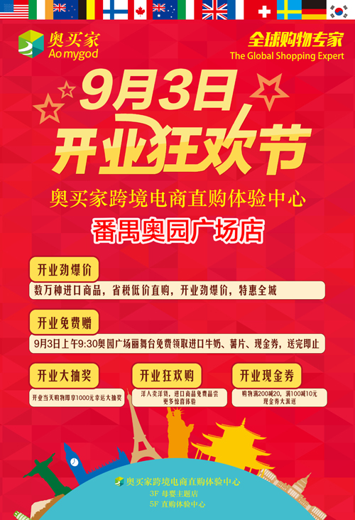 香港上市名企、中國(guó)房企30強(qiáng)中國(guó)奧園地產(chǎn)集團(tuán)(股票編號(hào):3883)旗下跨境電商品牌,全球購(gòu)物專家——奧買家(AO mygod),首家自營(yíng)直購(gòu)體驗(yàn)中心落戶番禺奧園廣場(chǎng),將于9月3日盛大開業(yè)。這是廣州番禺真正意義上第一家大型跨境電商直購(gòu)體驗(yàn)中心。從此,番禺及周邊市民將在家門口就可以購(gòu)買數(shù)萬(wàn)種原裝進(jìn)口商品,也可登錄奧買家網(wǎng)上平臺(tái)購(gòu)買低價(jià)保稅商品。