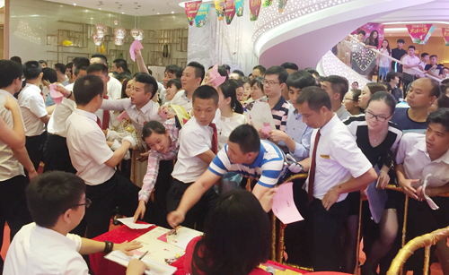 從早上7點(diǎn)開始就有大批客戶來現(xiàn)場簽到、排隊(duì)等候,看不到尾的長龍預(yù)示著一場嚴(yán)酷的搶鋪大戰(zhàn)蓄勢待發(fā)。10點(diǎn)開始,30分鐘售罄,16秒一套的速度再創(chuàng)奇跡!