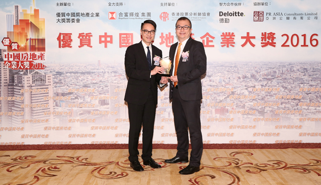 「優(yōu)質(zhì)中國(guó)房地產(chǎn)企業(yè)大獎(jiǎng)」旨在表?yè)P(yáng)房地產(chǎn)精英的杰出表現(xiàn),以及對(duì)香港和內(nèi)地經(jīng)濟(jì)繁榮所作出的貢獻(xiàn)。評(píng)審委員會(huì)由香港股票分析師協(xié)會(huì)及多位資深股評(píng)人組成,根據(jù)企業(yè)整體表現(xiàn),包括業(yè)績(jī)、前景、管治規(guī)范、項(xiàng)目執(zhí)行、品牌形象及社會(huì)責(zé)任六大準(zhǔn)則進(jìn)行評(píng)審,選出最優(yōu)質(zhì)的中國(guó)房地產(chǎn)企業(yè)。