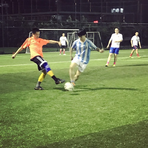 比賽之前,兩隊(duì)隊(duì)員都蓄勢待發(fā),內(nèi)心共同吶喊出必勝。加油鼓勁的觀眾聚集在賽場周圍翹首以待這場精彩的比賽。晚上7點(diǎn)整,隨著一聲哨響,奧園隊(duì)與奔馳隊(duì)展開了激烈的角逐。開場前半段,雙方都以防守為主,穩(wěn)中求進(jìn),不斷試探對方實(shí)力。奧園隊(duì)?wèi){借巧妙的攻略、熟練的腳法以及默契的配合多次突破對方的防線,上半場以2:1的比分領(lǐng)先奔馳隊(duì)。