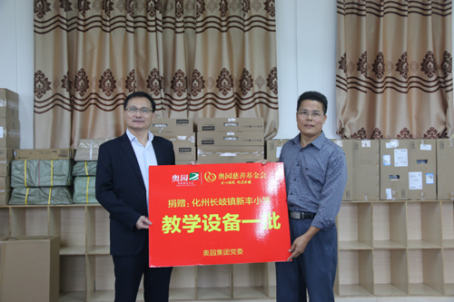 自2017年4月26日奧園集團黨委、北京師范大學南國奧園實驗學校與化州新豐小學結(jié)對共建以來,一直保持緊密的教研幫扶聯(lián)系。16日下午,奧園集團領導一行迎著臺風冒著大雨再次來到新豐小學,化州市長岐鎮(zhèn)人大主任陳超英、新豐村委書記李亞統(tǒng)、新豐小學校長李超藝等均出席了捐贈儀式,奧園集團黨委書記、總裁郭梓寧代表奧園集團黨委、奧園慈善基金會為新豐小學送上了電腦、多功能速印一體機及圖書一批等。這一愛心之舉解決了新豐小學沒有教學電腦、沒有試卷資料印刷設備的困擾,切實提高了教師學生的教學與學習條件。