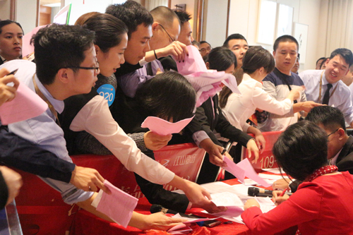 為了能搶到心儀房源,早上7點(diǎn),不少數(shù)客戶已在營銷中心門口排隊(duì)等候。開盤前1小時(shí),在工作人員的引導(dǎo)下,客戶依次排隊(duì)領(lǐng)號(hào)進(jìn)入等候區(qū),不停與置業(yè)顧問交流房源信息。9點(diǎn)30分,開盤活動(dòng)正式開始,內(nèi)場搶房如火如荼,外場等待客戶心情迫切!
