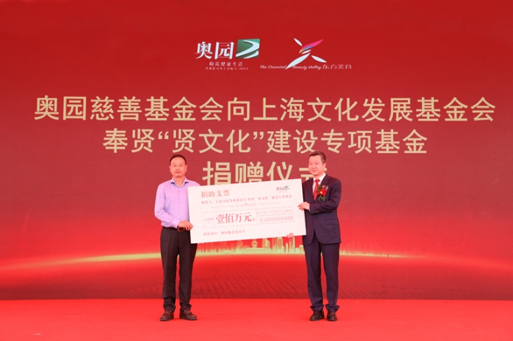 奧園慈善基金會(huì)向上海文化發(fā)展基金會(huì)奉賢“賢文化”建設(shè)專項(xiàng)基金捐贈(zèng)儀式