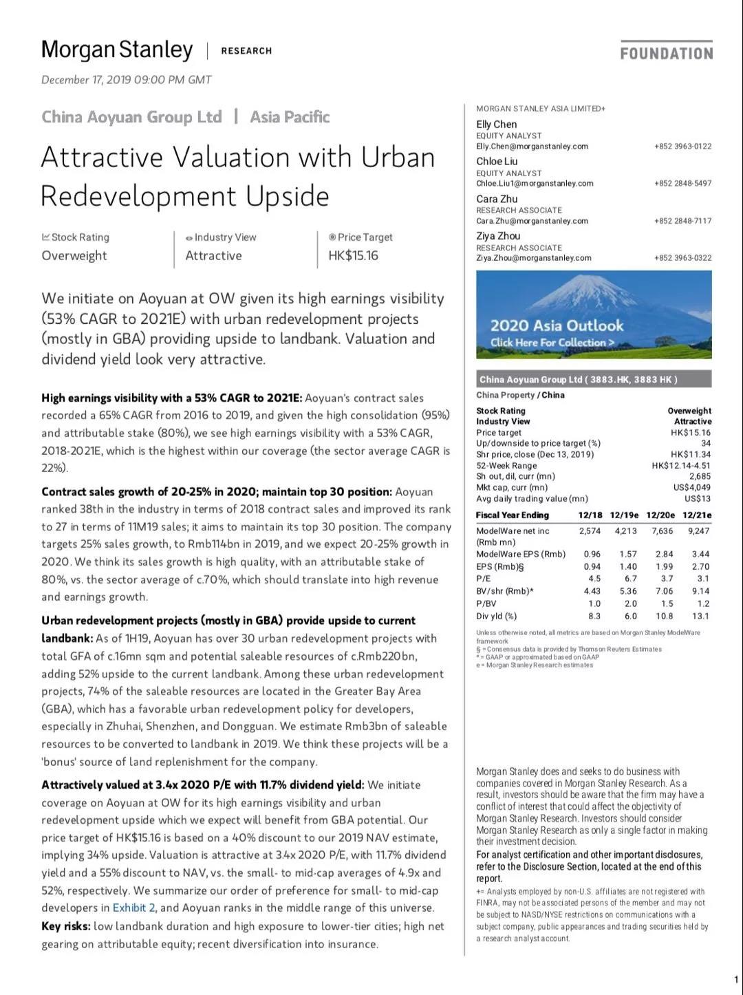 摩根士丹利認(rèn)為,中國奧園2019年前11個月已完成全年目標(biāo)的89%。由于可售資源充足,去化率合理,達(dá)標(biāo)無懸念。該行還預(yù)計,中國奧園2020年將保持20%至25%的增長率,以及全國前30強(qiáng)地位,加之權(quán)益比較高,有助轉(zhuǎn)化為較高的收入及盈利增速。