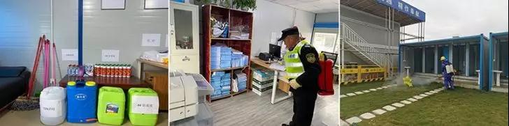 第三步,勤消殺無死角。在作業(yè)工人返崗前,各項目管理人員提前到崗,準(zhǔn)備應(yīng)急物資,同時監(jiān)督辦公區(qū)、生活區(qū)、膳食區(qū)的消毒工作。