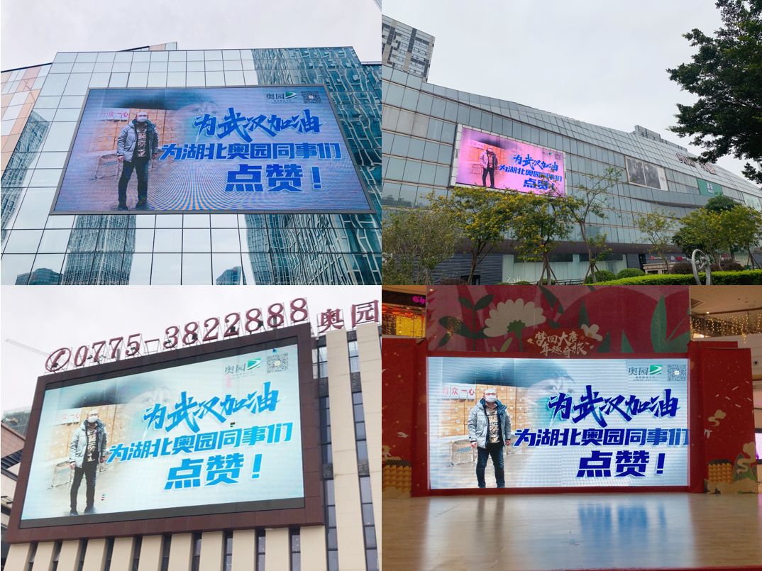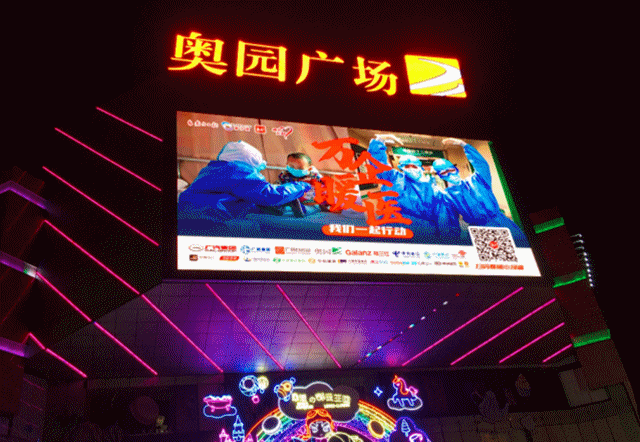 目前,“萬企暖醫(yī)——我們一起行動(dòng)”主題海報(bào)已在中國(guó)奧園全國(guó)21個(gè)項(xiàng)目樓盤及商業(yè)物業(yè)項(xiàng)目的35塊戶外LED大屏和“麗舞臺(tái)”LED屏幕滾動(dòng)播放,吸引市民不自覺地抬頭駐足,仰望在那厚厚的防護(hù)鏡背后,醫(yī)護(hù)人員可愛可敬的面容。