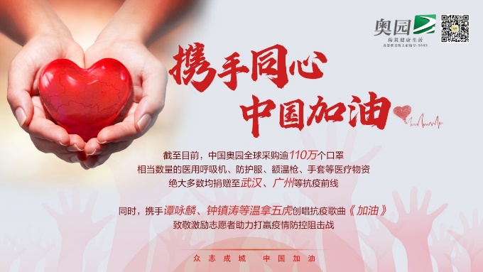 從 1 月 24 日至今,中國奧園已通過各渠道全球采購逾 110 萬只 N99、N95、FFP2、FFP1、一次性醫(yī)用等口罩,及相當數(shù)量的醫(yī)用呼吸機、防護服、額溫槍、手套等醫(yī)療物資,其中絕大多數(shù)已捐贈至武漢、廣州等抗疫前線。目前,中國奧園還在持續(xù)緊密關注疫情形勢,以多種形式助力抗疫防疫。