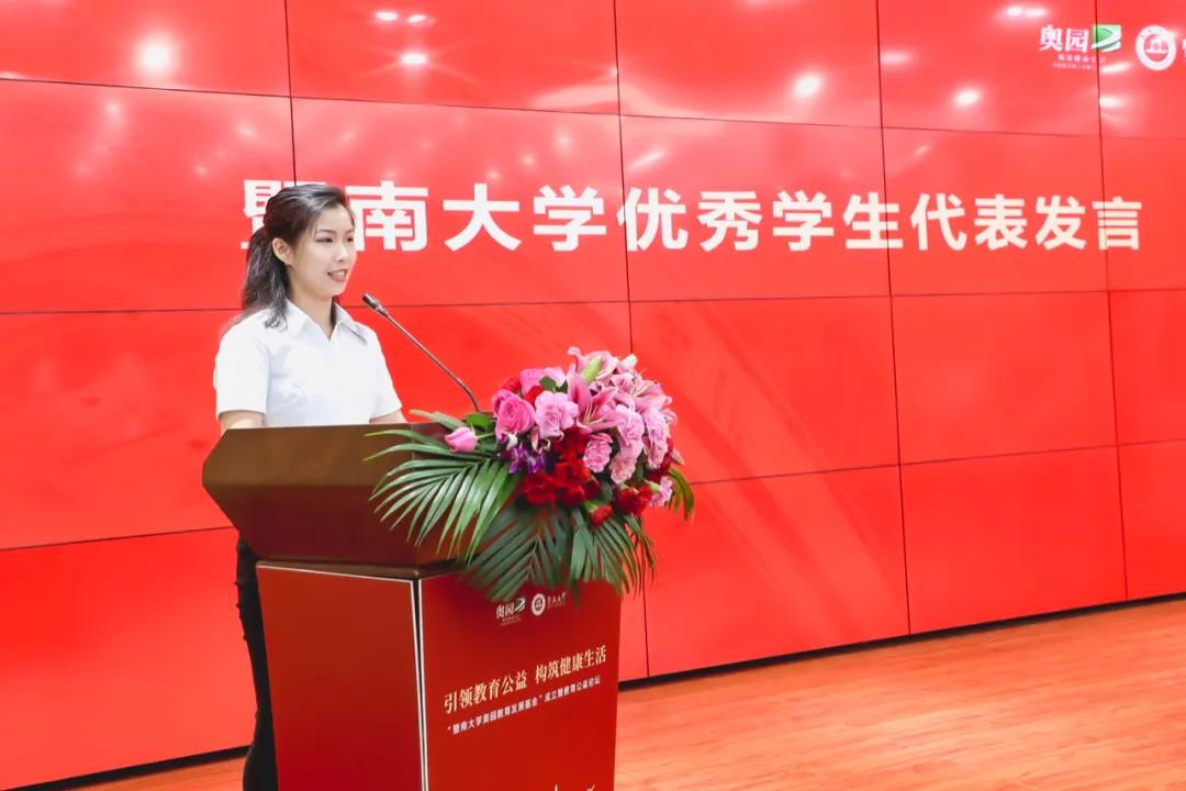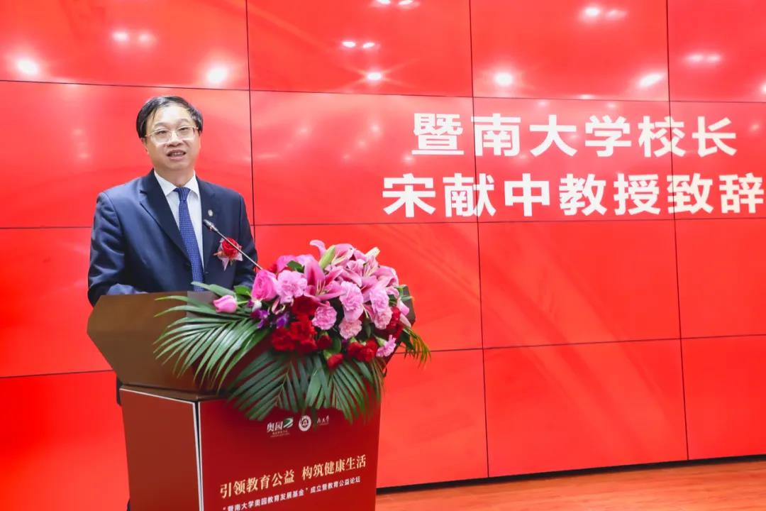 在今天的儀式現(xiàn)場(chǎng),宋獻(xiàn)中校長(zhǎng)致辭時(shí)高度肯定了郭梓文主席的公益情懷和中國(guó)奧園的責(zé)任擔(dān)當(dāng),感謝郭梓文主席與中國(guó)奧園多年來對(duì)暨南大學(xué)人才培養(yǎng)、學(xué)校辦學(xué)發(fā)展所做的貢獻(xiàn)。他表示,“暨南大學(xué)奧園教育發(fā)展基金”的成立,既立足當(dāng)下,又惠及長(zhǎng)遠(yuǎn),對(duì)改善學(xué)校辦學(xué)、探索人才培養(yǎng)機(jī)制以及激勵(lì)學(xué)子求學(xué)創(chuàng)新等方面發(fā)揮著重要作用。