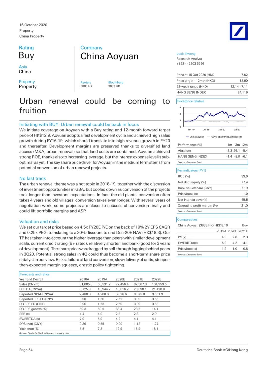 德銀認(rèn)為,奧園的多元化拿地有助穩(wěn)定利潤率,城市更新項目轉(zhuǎn)化進入收獲期,加之四季度銷售有望進一步走高,目標(biāo)價12.9港元,予“買入”評級。
