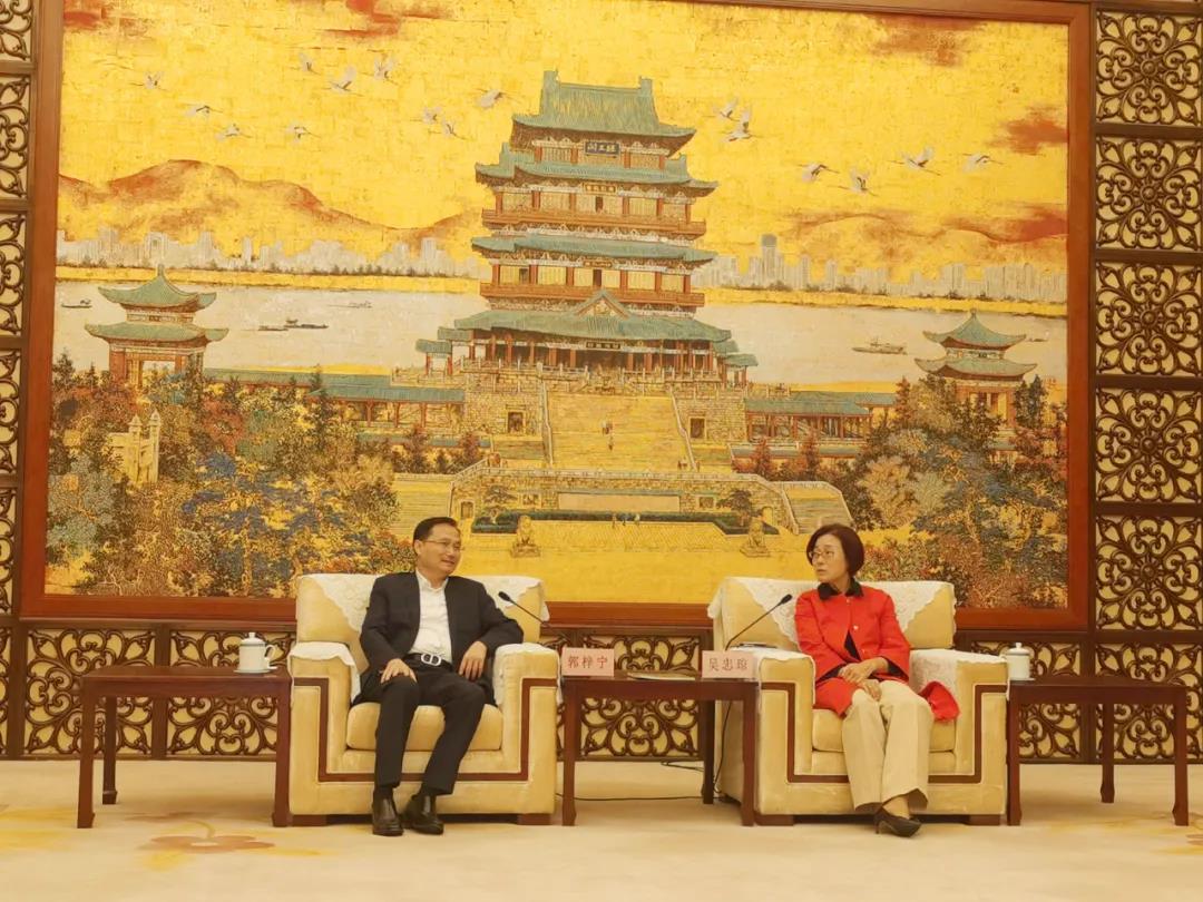 江西省委常委、副省長(zhǎng)吳忠瓊(右)與奧園集團(tuán)黨委書記、總裁郭梓寧(左)舉行會(huì)晤