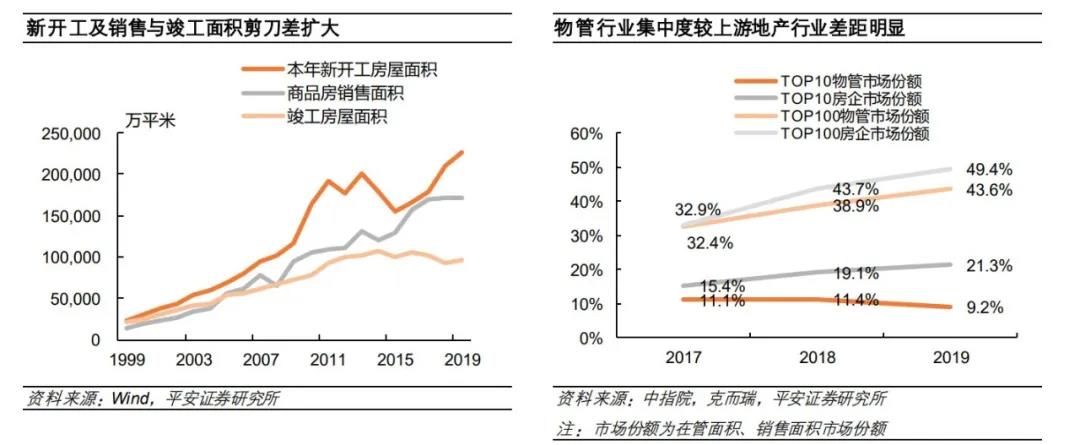 增量方面,全國(guó)新開工面積及銷售面積近5年復(fù)合增速分別為10.1%、7.5%,至2019年已達(dá)到22.7、17.2億平米,而竣工面積近5年僅維持在10億平米左右。持續(xù)累積差預(yù)示未來(lái)竣工有望迎來(lái)提振修復(fù),將為物管行業(yè)注入可觀的增量規(guī)模,平安證券預(yù)計(jì)2030年住宅物業(yè)管理面積或?qū)⒃鲋?span lang="EN-US">241億平米,較2019年增長(zhǎng)46%。