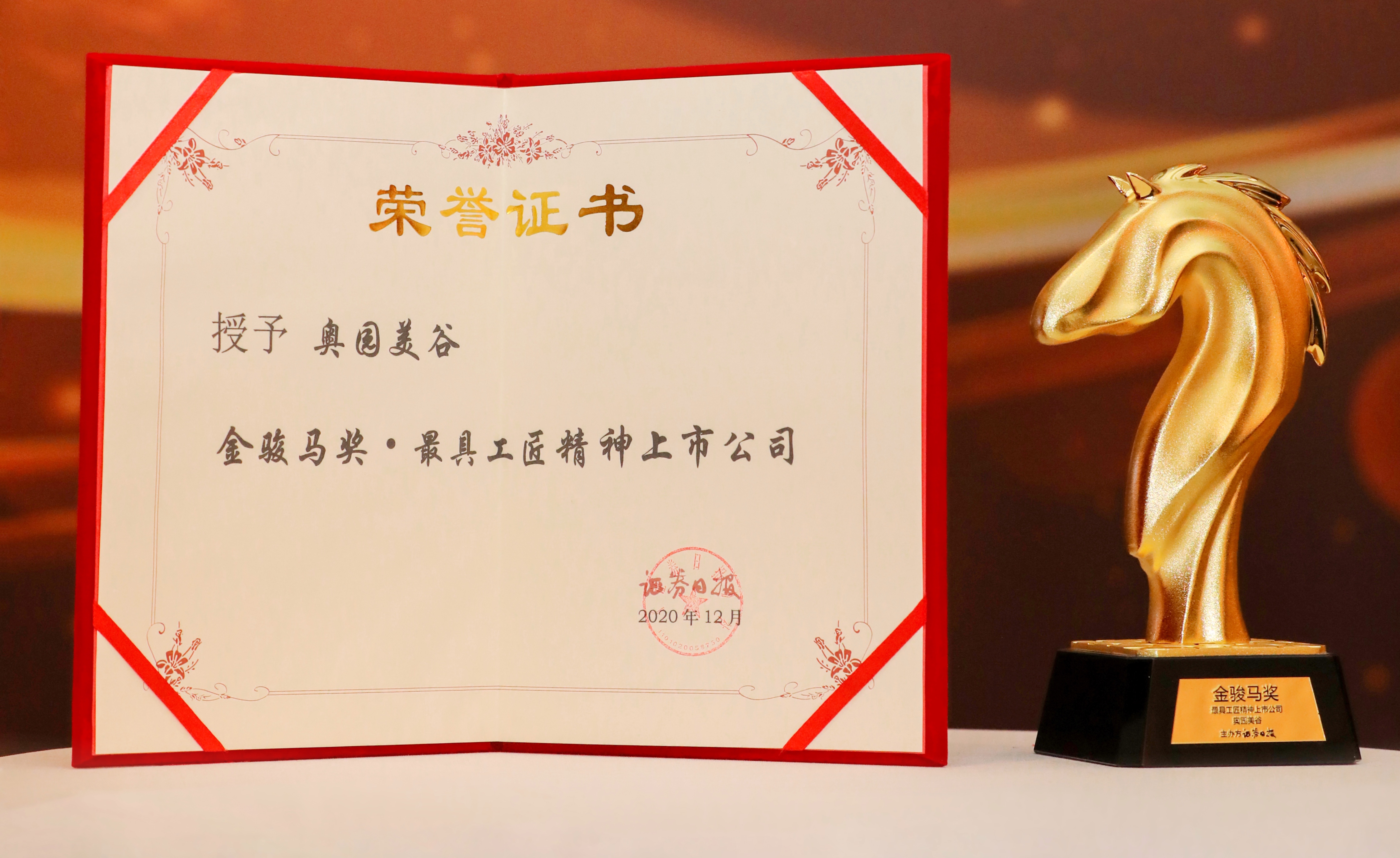 12月11日,由《證券日報》社主辦的“第四屆新時代資本論壇”在北京隆重召開,并揭曉“2020年度中國證券市場金駿馬獎”,奧園美谷憑借不斷提升的公司治理水平、持續(xù)改善的經(jīng)營管理情況、清晰明確的未來發(fā)展戰(zhàn)略,榮膺“金駿馬獎·最具工匠精神上市公司”。