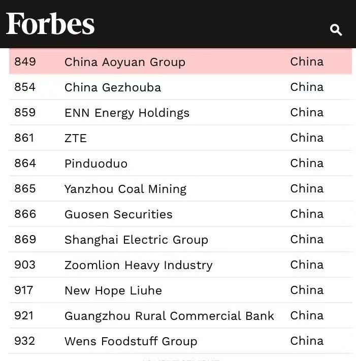 躍升303位!中國(guó)奧園躋身福布斯全球企業(yè)1000強(qiáng)