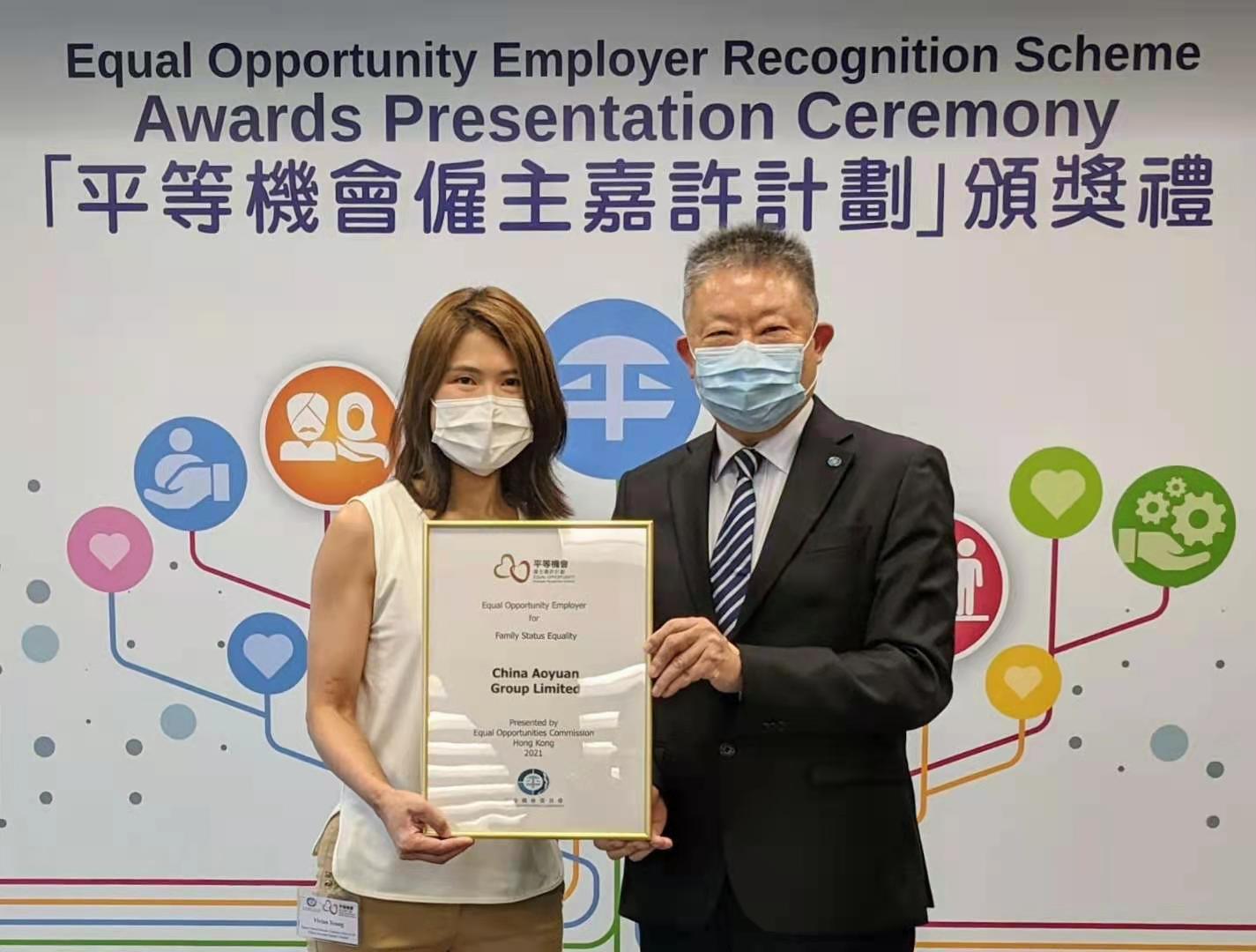 中國奧園獲香港平等機(jī)會委員會《平等機(jī)會雇主(家庭崗位平等)》嘉許