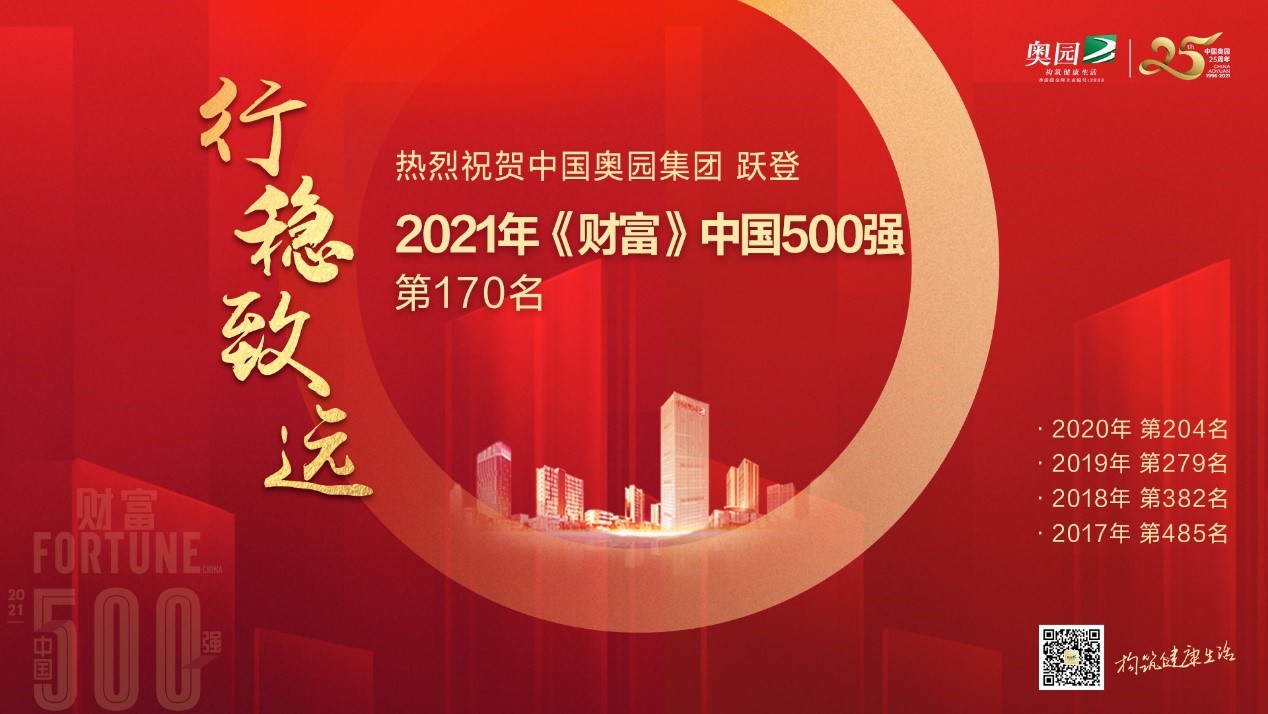 2021《財(cái)富》中國500強(qiáng)揭榜 中國奧園排名五連升 榮列第170名