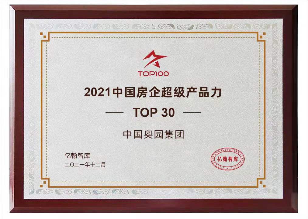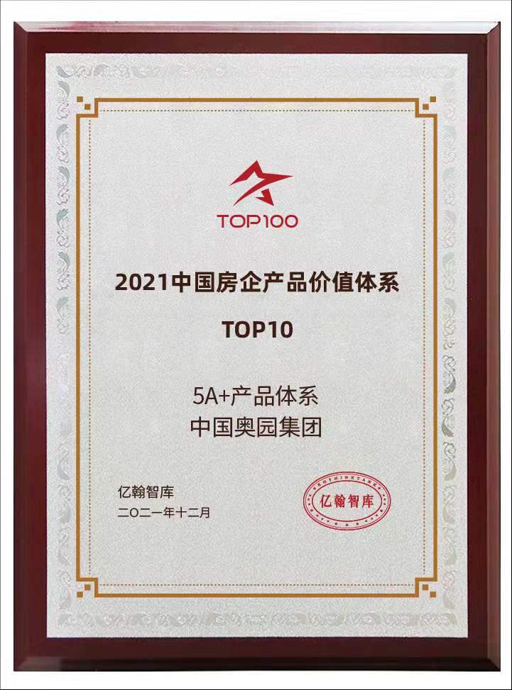 中國奧園榮列“2021中國房企產(chǎn)品價值體系TOP10”
