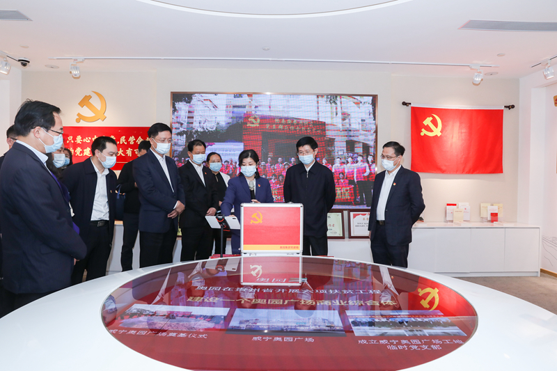 黨建箱前,國歌奏響,一批批領(lǐng)導蒞臨指導、親切關(guān)懷。2021年,奧園集團持續(xù)深化非公黨建工作,獲得全國工商聯(lián)副主席李兆前,廣東省委統(tǒng)戰(zhàn)部副部長、省工商聯(lián)黨組書記雷彪等各級領(lǐng)導調(diào)研指導,共計120余批次,以黨建促進企業(yè)生產(chǎn)經(jīng)營、創(chuàng)新社區(qū)基層治理、促進商圈繁榮建設的成果備受肯定。