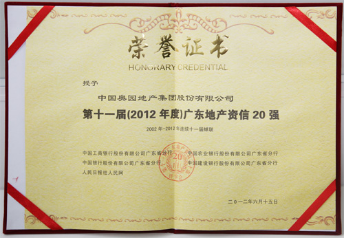 廣東地產(chǎn)資信20強(qiáng)的評(píng)審活動(dòng)至今已連續(xù)舉辦十一屆,由四大銀行和權(quán)威媒體人民日?qǐng)?bào)人民網(wǎng)聯(lián)合舉辦,此獎(jiǎng)具有極高的資本公信力,評(píng)審內(nèi)容不僅包含企業(yè)20多項(xiàng)專業(yè)財(cái)務(wù)指標(biāo),還包含銀行等金融機(jī)構(gòu)合作滿意度和信用度、社會(huì)責(zé)任貢獻(xiàn)度、預(yù)期銷售收入等多項(xiàng)指標(biāo)。