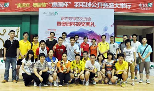 (2012年6月5日——中山)適逢四年一度的奧運(yùn)年,奧園集團(tuán)在全國(guó)多座城市同時(shí)開展“奧運(yùn)年·奧園情”系列活動(dòng),倡導(dǎo)運(yùn)動(dòng)健康精神,傳揚(yáng)低碳健康生活宣言!作為“奧運(yùn)年·奧園情”的最后一站,6月2日中山奧園舉辦了“奧園杯”羽毛球公開賽頒獎(jiǎng)典禮暨“奧園·星辰”新品發(fā)布會(huì)。世界冠軍謝杏芳親臨現(xiàn)場(chǎng)為獲勝者頒獎(jiǎng),并教授羽毛球的經(jīng)典技戰(zhàn)術(shù)。廣大奧園業(yè)主與世界冠軍“零”距離接觸,為“奧運(yùn)年·奧園情”又添上濃墨重彩的一筆。