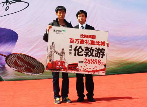 上午11時(shí),重量級(jí)體壇巨星,曾榮獲多項(xiàng)世界級(jí)比賽冠軍,并于2008年北京奧運(yùn)會(huì)獲得羽毛球女單亞軍的謝杏芳女士隆重出場(chǎng),一場(chǎng)精彩的開(kāi)球儀式拉開(kāi)“奧園杯”羽毛球賽的序幕,沈陽(yáng)奧園成功開(kāi)啟“奧運(yùn)年奧園情”的精彩第一站?,F(xiàn)場(chǎng)人潮洶涌,氣氛熱烈。時(shí)逢五一小長(zhǎng)假,仍然有幾百名奧園新老業(yè)主與活動(dòng)嘉賓熱情高漲,親睹世界級(jí)羽壇明星的風(fēng)采,體驗(yàn)羽毛球運(yùn)動(dòng)精髓。更有幸運(yùn)業(yè)主現(xiàn)場(chǎng)獲得“倫敦奧運(yùn)游”大獎(jiǎng),將現(xiàn)場(chǎng)氣氛推向高潮。假日里的沈陽(yáng)奧園人氣爆棚,充滿著歡樂(lè)激情。