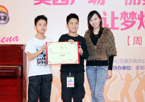 通過周賽的激烈角逐,第一輪周賽冠、亞、季軍和優(yōu)秀獎已經(jīng)產(chǎn)生獲得晉級月賽的資格和現(xiàn)場頒發(fā)的證書和獎金。獲獎選手無比高興和自豪,紛紛在麗舞臺上興奮的合影留戀。來自華南師范大學(xué)聲樂系的黃海明選手說:“我從海報上得知奧園廣場·麗舞臺參賽消息就立刻報名了,感謝奧園廣場·麗舞臺給我提供一個展示音樂才華的夢想舞臺,我有信心一直比下去”。