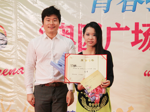 橋南街家庭綜合服務(wù)中心李蔚翔翔主任為“五四”專場(chǎng)亞軍頒獎(jiǎng)