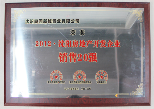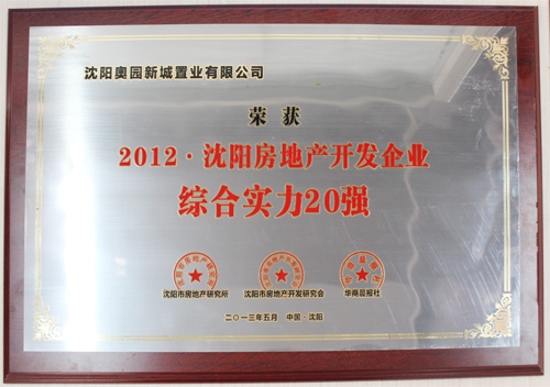 沈陽(yáng)奧園榮膺“2012年沈陽(yáng)房地產(chǎn)開發(fā)企業(yè)綜合實(shí)力20強(qiáng)”稱號(hào)