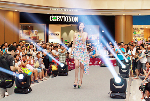 (2013年09月07日——廣州)由奧園廣場(chǎng)主辦的“潮·感應(yīng)”時(shí)尚show在東中庭舞臺(tái)盛大舉行,香港人氣歌手泳兒應(yīng)邀出席并現(xiàn)場(chǎng)演唱,活動(dòng)受到了市民及消費(fèi)者的熱烈追捧,吸引了千余人到場(chǎng)觀看,來自廣州、佛山、番禺等地多家媒體對(duì)活動(dòng)進(jìn)行了報(bào)道。
