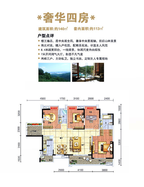 雄踞中央景觀中軸核心位置,瞰10萬(wàn)畝山林和3公里純天然溪流,山、林、水、園四重?zé)o敵景觀,8米闊景休閑陽(yáng)臺(tái),