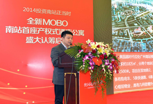 (2014年3月8日——廣州)奧園越時(shí)代舉行“全新MOBO南站首座產(chǎn)權(quán)式酒店公寓盛大認(rèn)籌啟動(dòng)——暨商家進(jìn)駐簽約儀式及星級(jí)大堂示范區(qū)開放”活動(dòng),全新MOBO公寓正式啟動(dòng)認(rèn)籌,同時(shí)創(chuàng)新MOBO公寓五星級(jí)酒店入戶大堂示范區(qū)對(duì)外開放。