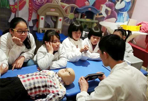 小朋友扮演嬰兒護(hù)理員,學(xué)習(xí)如何護(hù)理幼兒