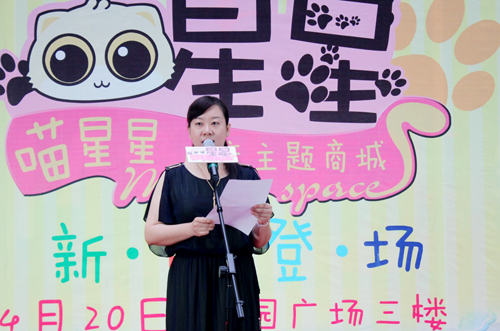 奧園廣場商業(yè)物業(yè)管理公司總經理姜惠女士為“喵星星”兒童主題商城開業(yè)致辭