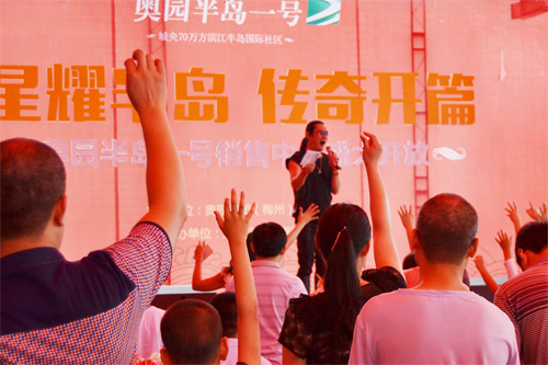 梅州奧園半島一號在活動當(dāng)天特邀請港臺巨星黃安先生登臺表演,并獻(xiàn)唱了《新鴛鴦蝴蝶夢》、《東南西北風(fēng)》等多首耳熟能詳?shù)慕?jīng)典歌曲,現(xiàn)場人氣爆棚,歡呼聲此起彼伏,梅州人民拿出了前所未有的熱情來迎接這位港臺明星,在明星與觀眾互動環(huán)節(jié)中,黃安先生特意準(zhǔn)備了禮物贈送給現(xiàn)場的朋友們。奧園藝術(shù)團(tuán)在活動當(dāng)天為觀眾獻(xiàn)上《貴妃醉酒》、《吉祥謠》、《快樂的跳吧》等眾多精彩的節(jié)目,給梅州市民帶來了美好的視聽享受!隨后,黃安先生來到銷售中心參觀沙盤,顧客們紛紛前來索取簽名、要求合照,氣氛火爆到至高點。眾多客戶表示強(qiáng)力看好奧園半島一號,紛紛當(dāng)場繳納認(rèn)籌金搶占自己的理想之家。