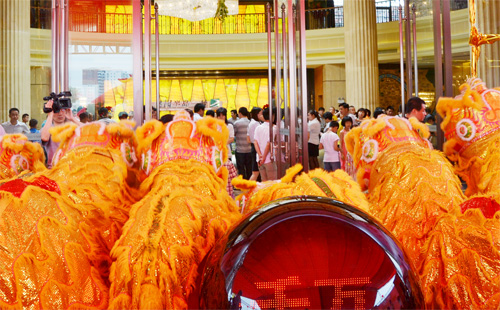 (2014年5月24日——梅州)飛舞的氣球、喜慶的鑼鼓、威武的南獅、熱烈的掌聲,梅州奧園半島一號銷售中心盛大開放!奧園集團(tuán)梅州項目副總經(jīng)理羅廣鷹先生、郭建明先生等與梅州市工商業(yè)聯(lián)合會、梅州市工商業(yè)聯(lián)合會、梅州·世界客商大會秘書處、梅州市芹洋半島品牌戰(zhàn)略發(fā)展區(qū)開發(fā)建設(shè)小組辦公室等各大協(xié)會機(jī)構(gòu)一眾領(lǐng)導(dǎo)嘉賓一同出席了此次活動。當(dāng)天上午,銷售中心內(nèi)外可謂是人聲鼎沸、熱鬧非凡,場面異?;鸨?,大批意向客戶到訪、參觀,前來咨詢的客戶更是絡(luò)繹不絕。