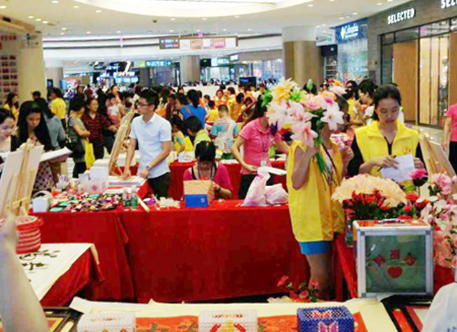 活動從上午10點持續(xù)到下午3點,番禺和悅社工、正陽社工、普愛社工、橋創(chuàng)社工、同創(chuàng)社工、陽光天使社工、廣愛社工等機構聯(lián)合表演了精彩的節(jié)目,并在東門處設置義賣攤位,通過現(xiàn)場出售殘障人士DIY的手工作品,募集愛心基金,用于幫助社會上有需要的人。