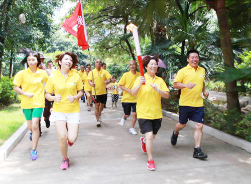 運(yùn)動會圣火在每個(gè)小區(qū)傳遞