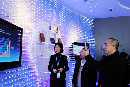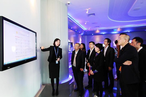 在騰訊智能展廳,工作人員向大家展示基于移動互聯(lián)網(wǎng)的各種未來智能家居應用方案,以及基于騰訊地圖的O2O解決方案等騰訊領先的服務技術平臺。