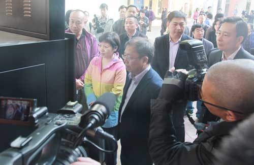 觀看“為民e站”智能終端機(jī)的現(xiàn)場(chǎng)演示
