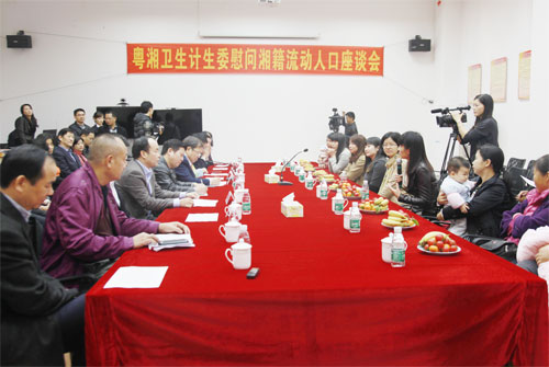 ?。?015年01月27日——廣州)1月23日,國(guó)家衛(wèi)計(jì)委流動(dòng)人口司司長(zhǎng)王謙,湖南省衛(wèi)計(jì)委副主任易露茜以及廣州市人口和計(jì)劃生育副局長(zhǎng)歐陽(yáng)資文、廣東省衛(wèi)計(jì)委流動(dòng)人口管理處處長(zhǎng)李學(xué)鈞及廣東省、湖南省衛(wèi)計(jì)委相關(guān)處室主要負(fù)責(zé)人等領(lǐng)導(dǎo)一行約40人,在番禺區(qū)副區(qū)長(zhǎng)張力仁、區(qū)人口計(jì)生局局長(zhǎng)陳忠文、橋南街黨工委書記陳紅英、街辦事處主任廖浩文等領(lǐng)導(dǎo)的陪同下蒞臨番奧社區(qū)調(diào)研指導(dǎo),并在番奧社區(qū)運(yùn)動(dòng)城二樓黨員電教室召開了慰問(wèn)活動(dòng)和座談會(huì)。奧園集團(tuán)黨委書記、總裁郭梓寧,集團(tuán)黨委副書記兼番奧社區(qū)黨委副書記、物業(yè)公司總經(jīng)理林莉等人接待了調(diào)研組一行。