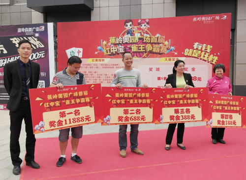 ?。?015年3月22日——梅州)經(jīng)過三場激烈而緊張的切磋,3月22日,蕉嶺奧園廣場首屆紅中寶“雀王爭霸賽”正式開場,比賽中,蕉嶺奧園廣場首屆雀王榮耀問世!