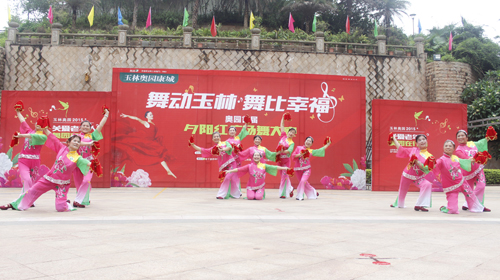 ??? (2015年5月31日——玉林)2015年5月31日,“舞動(dòng)玉林?舞比幸福”——玉林奧園康城首屆廣場(chǎng)舞大賽完美落幕。本次大賽是由玉林市老干部活動(dòng)中心、玉林市群眾藝術(shù)館、玉林奧園康城聯(lián)合舉辦。大賽自4月30日啟動(dòng)以來(lái),廣受市民追捧和支持。僅用1個(gè)月時(shí)間則完成籌備、報(bào)名、海選、復(fù)賽到?jīng)Q賽,并取得良好效果。同時(shí),決賽當(dāng)天,玉林市群眾藝術(shù)館文化活動(dòng)基地奧園康城站正式成立,可謂雙喜臨門(mén)。