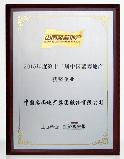 中國奧園地產(chǎn)集團榮獲“2015年度第十二屆中國藍籌地產(chǎn)”榮譽