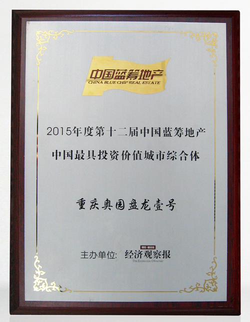 重慶奧園盤龍壹號項目榮獲“2015年度中國最具投資價值城市綜合體”獎項