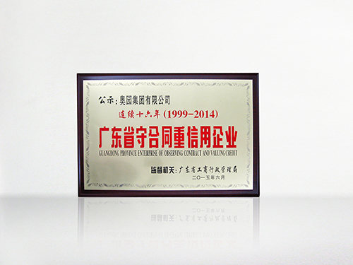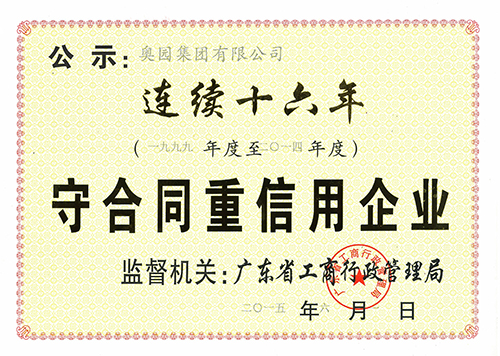 奧團連續(xù)十六年榮膺“廣東省守合同重信用企業(yè)”稱號