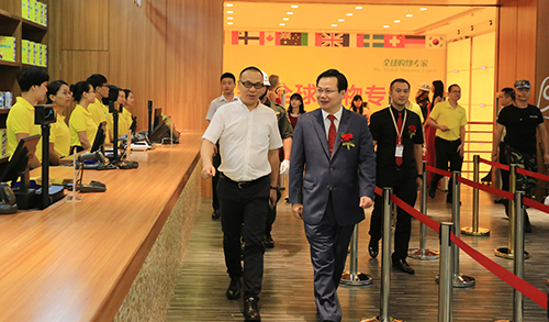 中國奧園地產(chǎn)集團(tuán)董事局主席郭梓文等領(lǐng)導(dǎo)嘉賓參觀5樓跨境電商直購體驗(yàn)中心