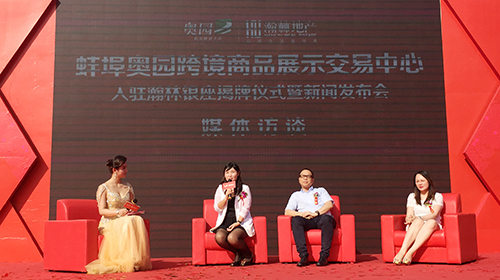 (2015年9月12日——蚌埠)為了將瀚林銀座項目打造成為蚌埠商業(yè)標桿項目,瀚林地產(chǎn)與香港上市名企、中國房企30強中國奧園地產(chǎn)集團(股票編號:3883)強強合作共同開發(fā)打造瀚林銀座項目,并引入奧園旗下跨境電商品牌,全球購物專家——奧買家,打造皖北首個跨境商品展示交易中心,滿足蚌埠人民對進口商品的消費需求,提升蚌埠人民生活品質(zhì)。蚌埠奧園跨境商品展示交易中心入駐瀚林銀座揭牌儀式暨新聞發(fā)布會于2015年9月12日下午在蚌埠瀚林銀座售樓處隆重舉行。
