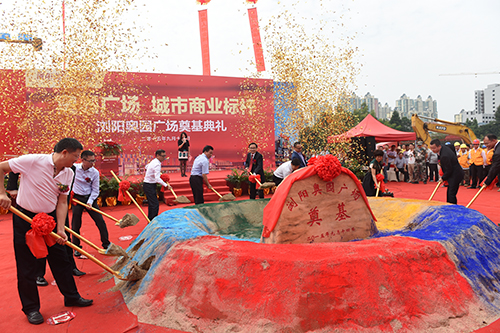 典禮上,瀏陽市政委主席李家喜先生對瀏陽奧園廣場項(xiàng)目給予了誠摯的祝福及充分的肯定,并希望該項(xiàng)目早日落成,為瀏陽的城市建設(shè)添姿加彩,提升城市品位和價(jià)值。郭總裁對瀏陽市政府給瀏陽奧園廣場的開發(fā)建設(shè)給予的傾力支持,表示了衷心的感謝。瀏陽奧園廣場必將提升本地區(qū)的城市品位和市民的生活品質(zhì),成為瀏陽的城市商業(yè)標(biāo)桿和亮麗的城市名片,也成為瀏陽市民購物、休閑、娛樂、飲食、居住的首選之地。最后,參加瀏陽奧園廣場的主禮嘉賓共同為瀏陽奧園廣場項(xiàng)目奠基培土。