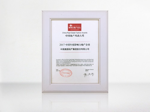 奧園榮獲“中國地產(chǎn)風尚大獎?2017中國年度影響力地產(chǎn)企業(yè)”