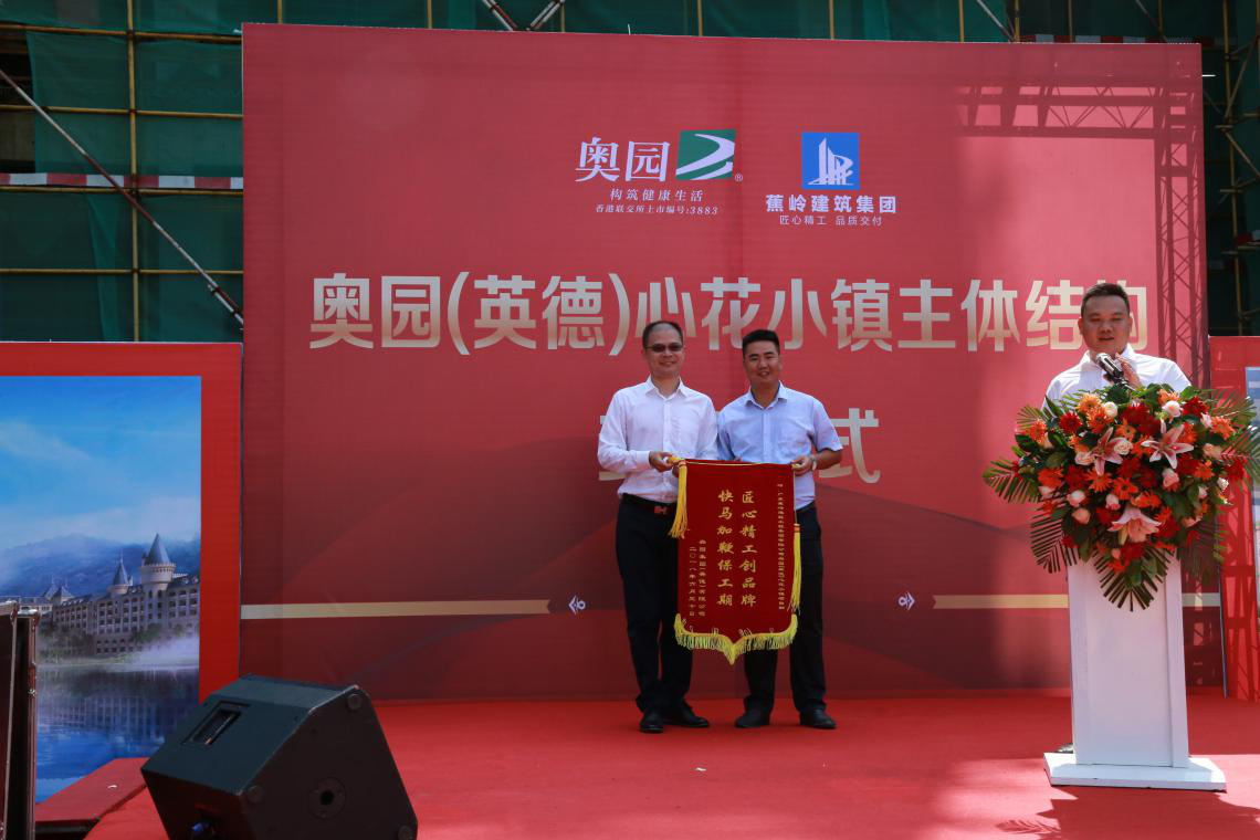 (2018年6月30日——清遠(yuǎn))6月30日上午,奧園英德心花小鎮(zhèn)施工現(xiàn)場彩旗飄揚(yáng),鞭炮齊鳴,在奧園集團(tuán)、文旅集...