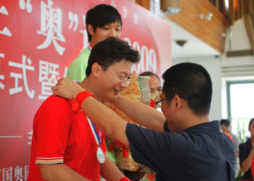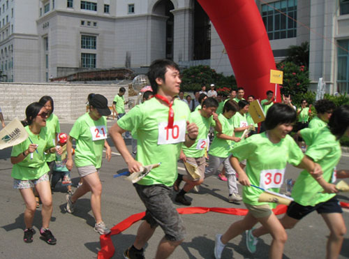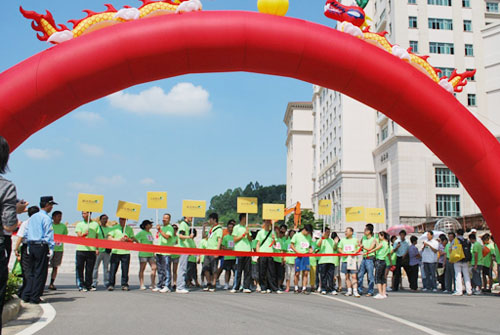 伴隨著雄渾有力的國歌,“奧”運會舉行了簡樸而莊重的升旗儀式和開幕儀式。隨后,發(fā)令槍一響,“奧”運會的首場賽事——南沙奧園養(yǎng)生長跑比賽開始,參賽選手在奧園業(yè)主啦啦隊的吶喊助威聲中,從南沙奧園大門口出發(fā),沿著碧波蕩漾的金奧湖畔,奔跑在長達2000米的私家林蔭大道上。兩旁大樹參天,為運動健兒遮陰蔽日;林中鳥語花香,為運動健兒鼓勁加油;山間清風(fēng)陣陣,為運動健兒提神送爽。比賽最后決出了男、女組前三名優(yōu)勝者,他們獲得了由奧園集團送出的一份精美獎品。